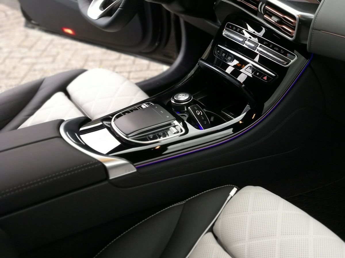 Het interieur is typisch Mercedes-Benz: rustgevend en elegant. Dat komt vooral door de glanszwarte afwerking van de materialen, de vlakke knoppen en de logische indeling van de middenconsole. De aanpasbare sfeerverlichting en lederen stoelbekleding maken het helemaal af.